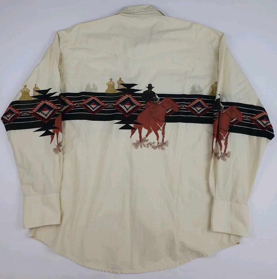 Vintage Wrangler Western Cowboy Horse Aztec Pattern Snap Shirt Rare USA ...