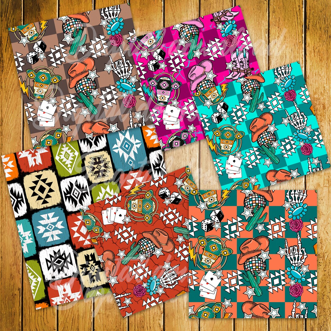 Western Seamless Patterns Digital Paper PNG Cowboy Aztec