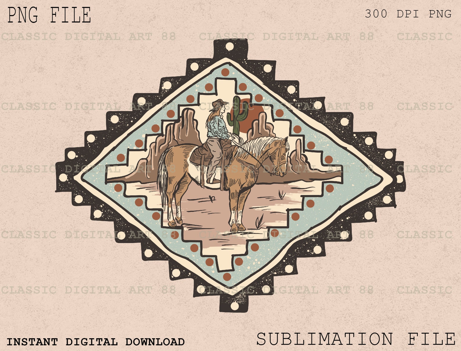 Southwestern Aztec Cowgirl Seamless Pattern Digital Download Navajo ...