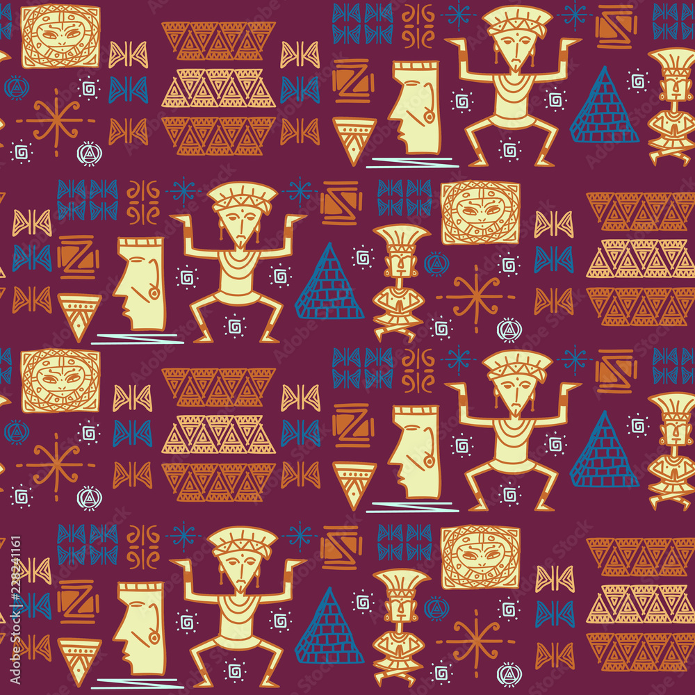 Aztec tribal pattern vector with hand drawn Hieroglyphics symbol. Maya ...