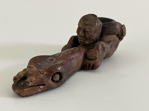 Mayan Aztec Snake Effigy Terracotta Pipe Clay Pottery Tribal Tobacco ...