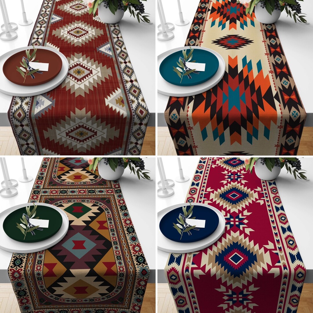 Aztec Table Runner, Tribal Kitchen Runners, Southwestern Tablecloth ...