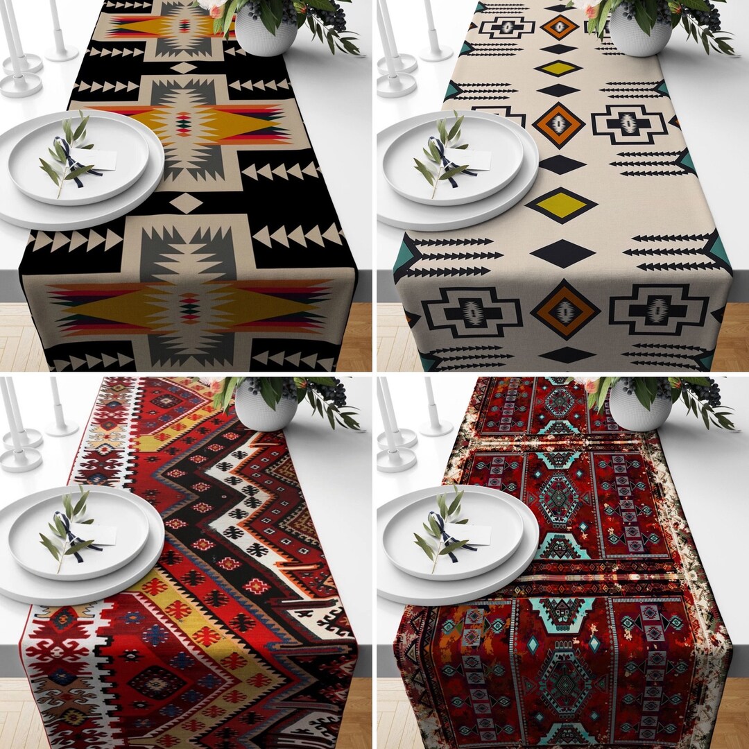 Boho Table Runner Southwestern Native Tribal American Ethnic Aztec ...