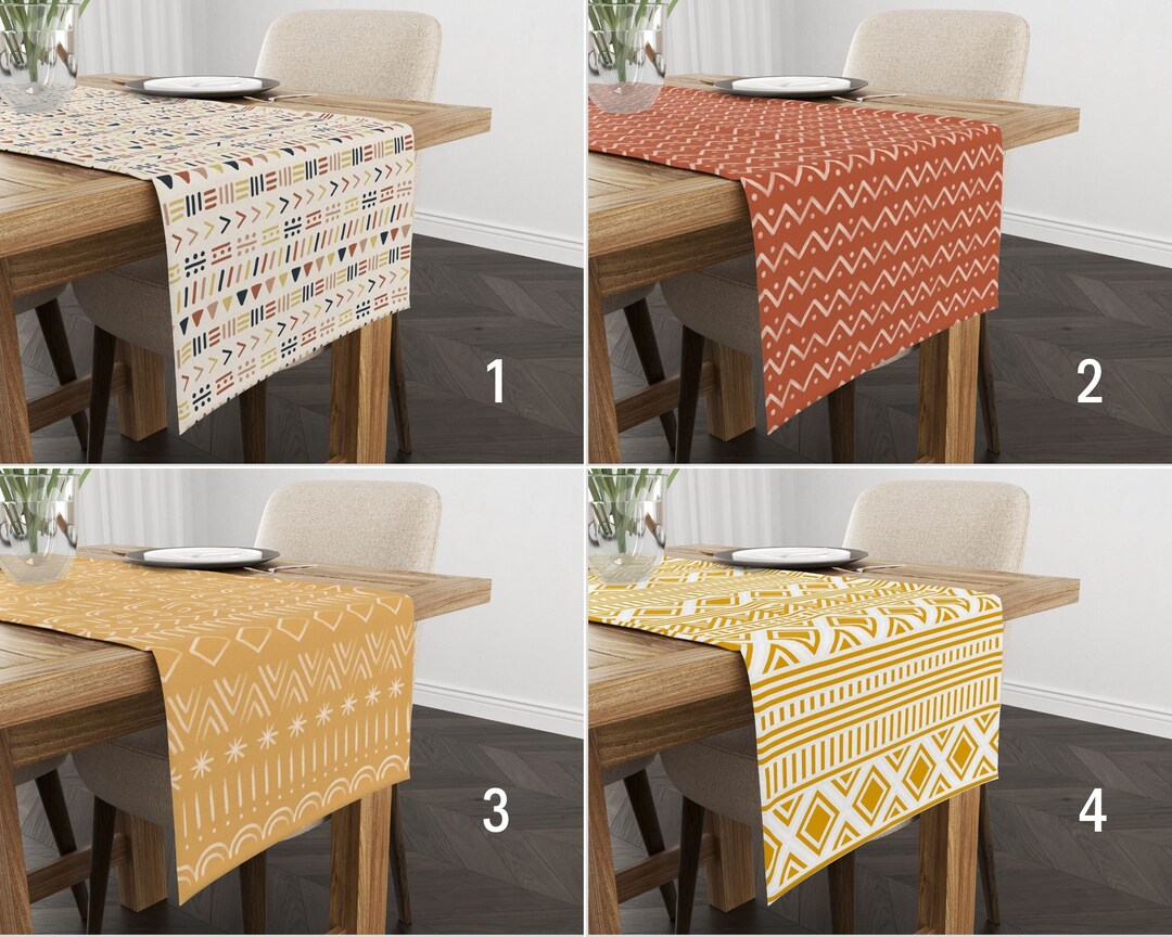 Tribal & Aztec Pattern Table Runner, Ethnic Kitchen Runner, Yellow ...