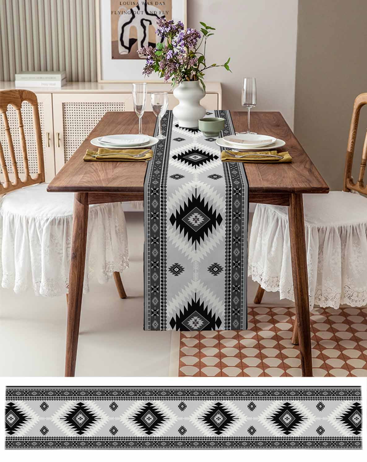 Aztec Gray Geometric Pattern Table Runner 13x70in Non-Slip Cotton Linen ...