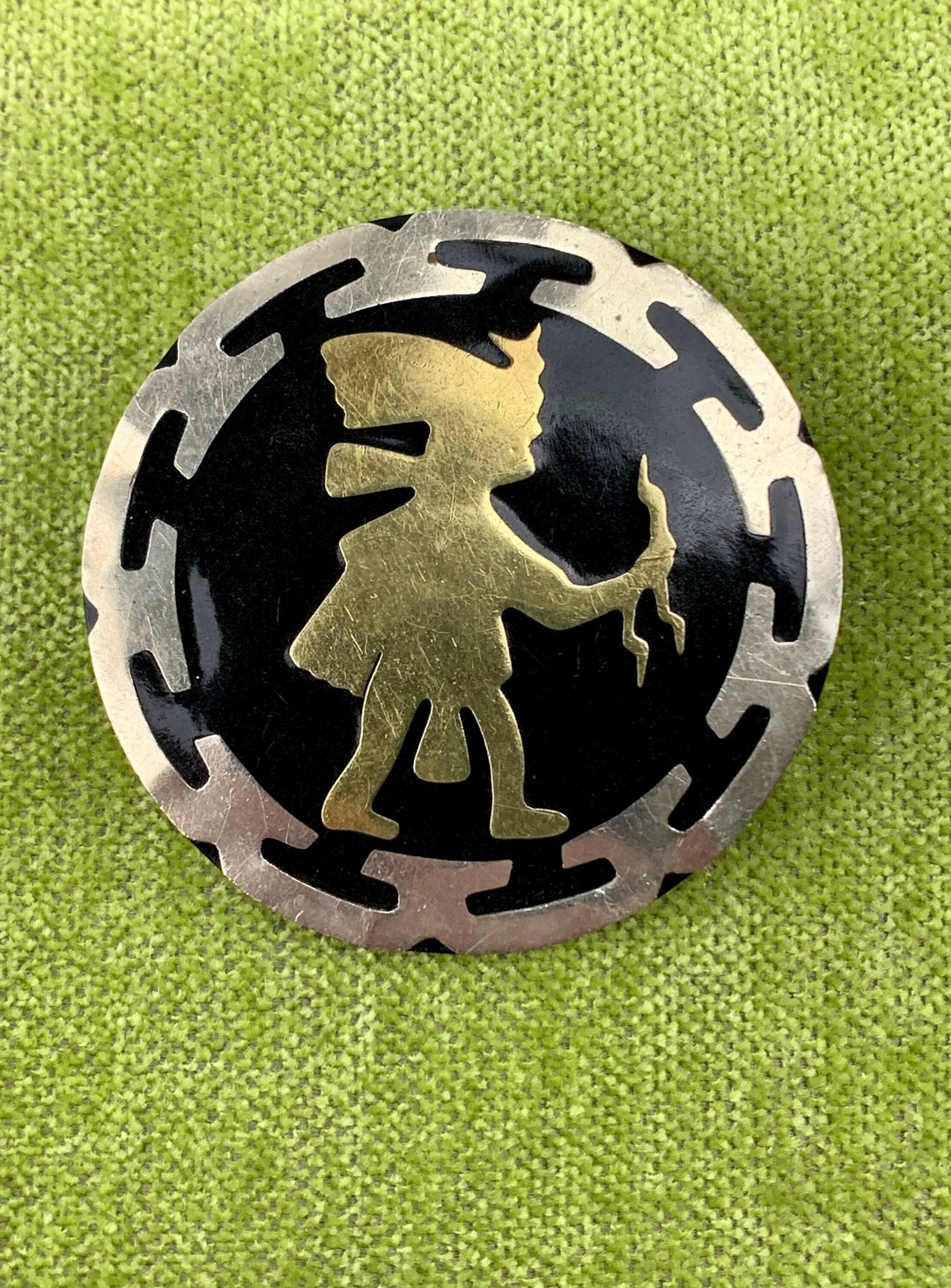 1940's-50's Aztec Warrior Brooch - Black Resin With Silver Inlay ...