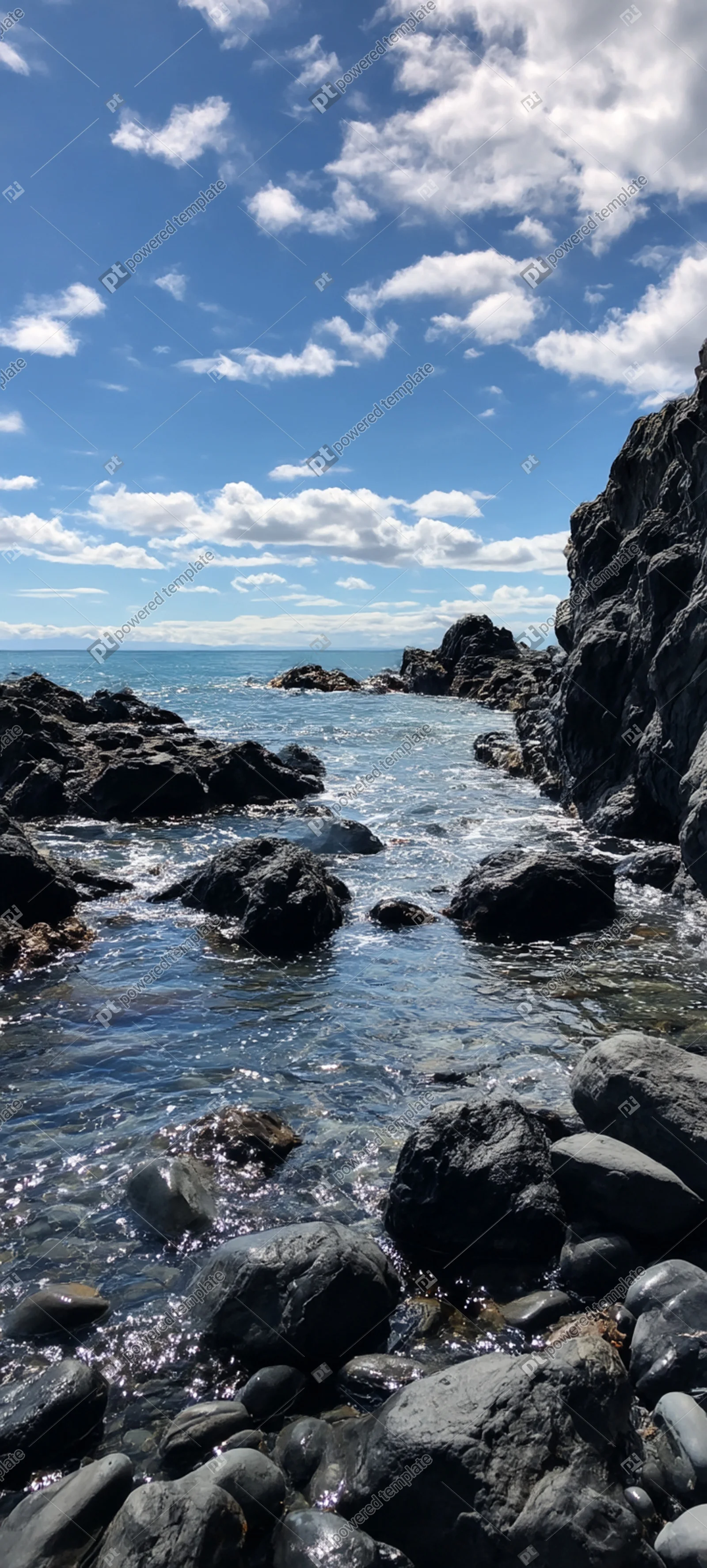 Sun-Dappled Rocky Inlet with Azure Waters and Cloud-Filled Sky | Gratis ...