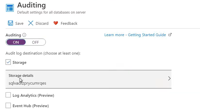 Getting started with Azure SQL Database auditing using Blob storage