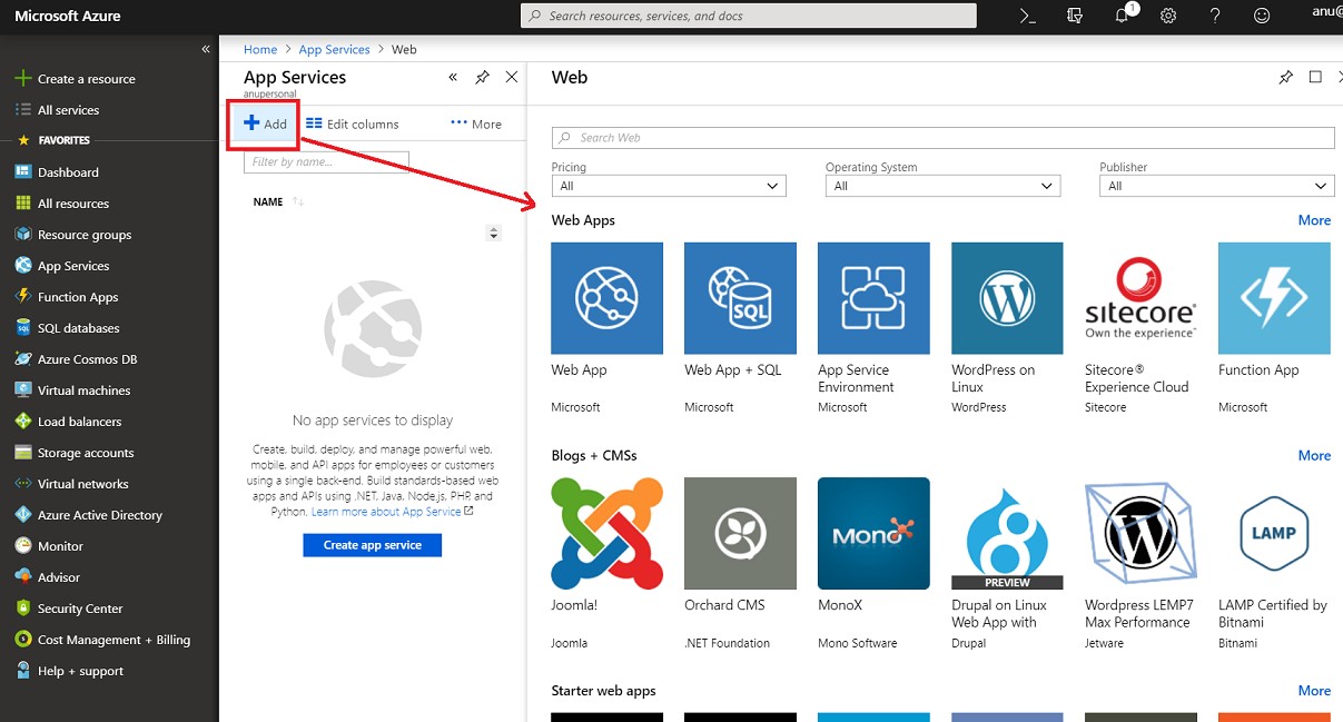 How to create an Azure Web App ? Deploying Empty Web App