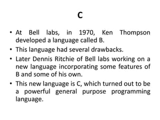Introduction to C Programming - Richie develop the UNIX operating ...
