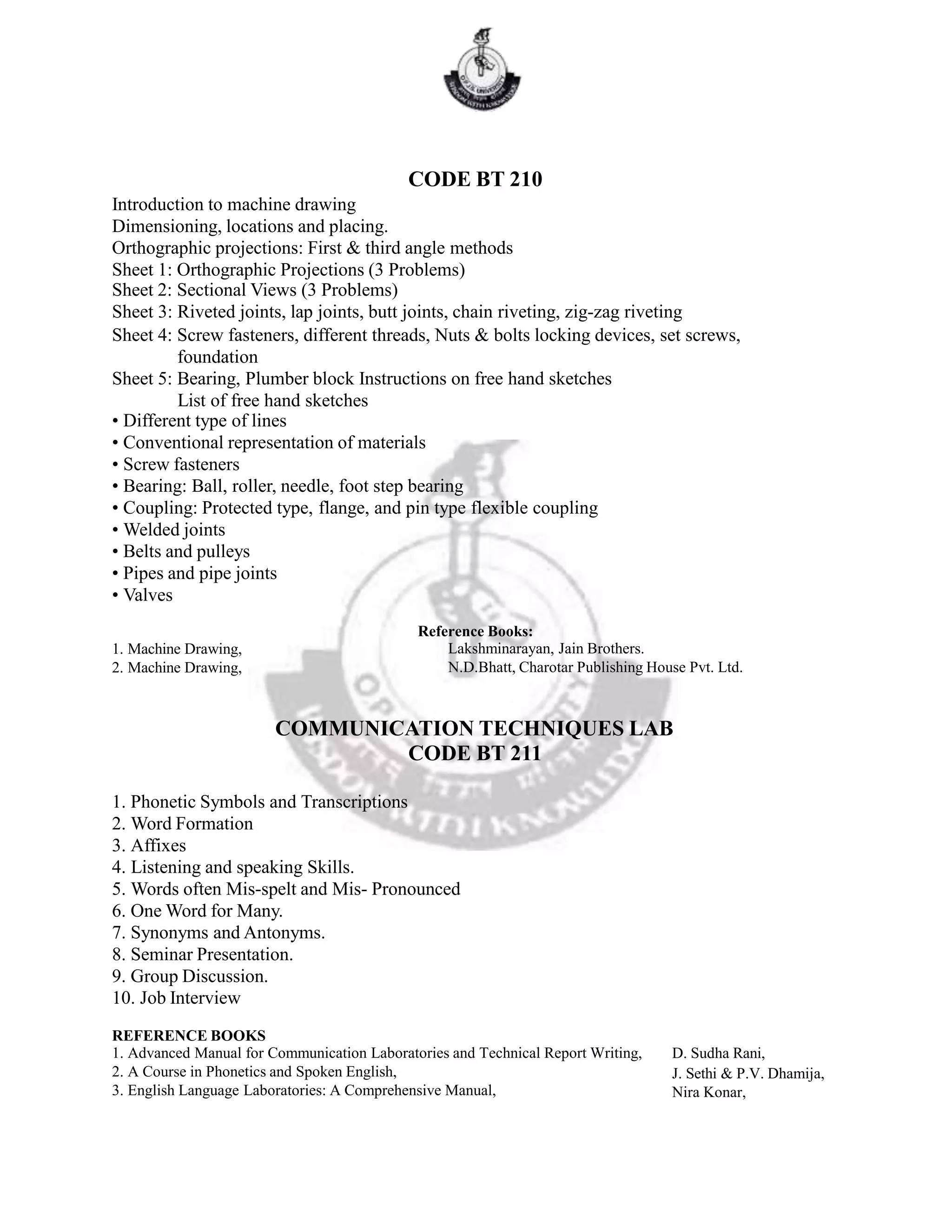 B.tech 1ST Year Syllabus - Sem I | PDF | Subject (Grammar) | Part Of Speech