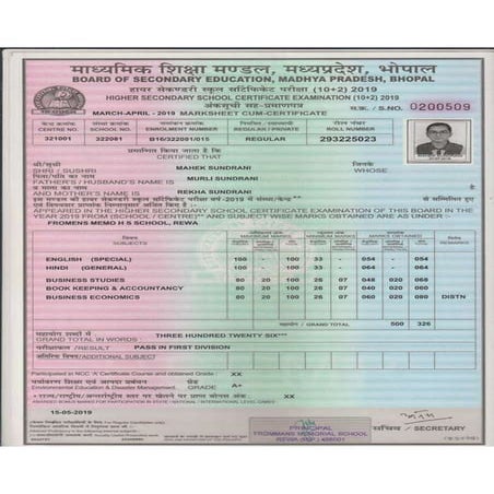 BA Final Year Marksheet Sample | PDF