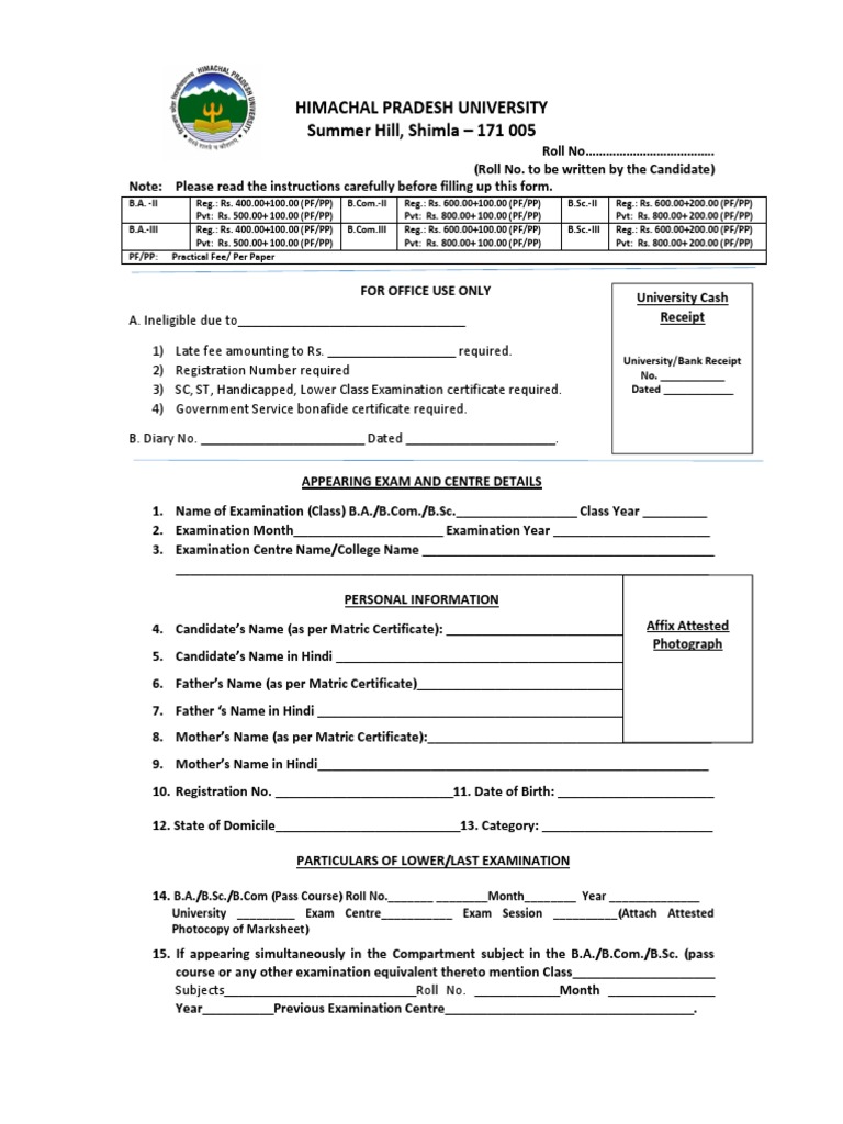 Hpu Ba Exam Form | PDF | Bachelor Of Arts | Test (Assessment)