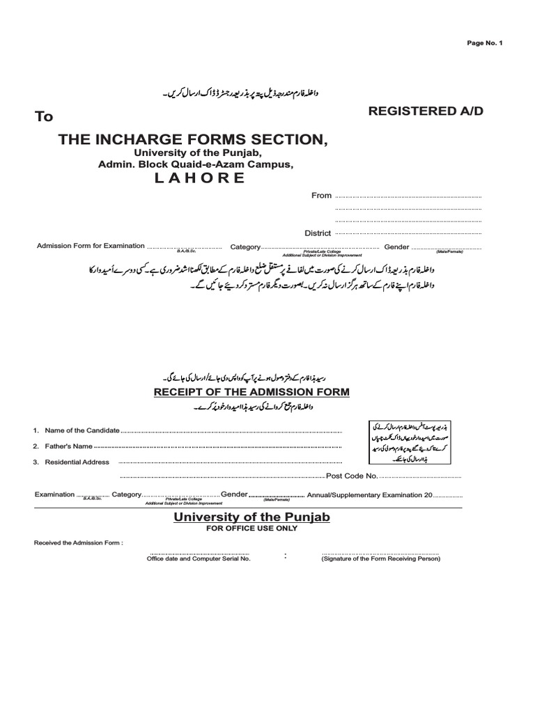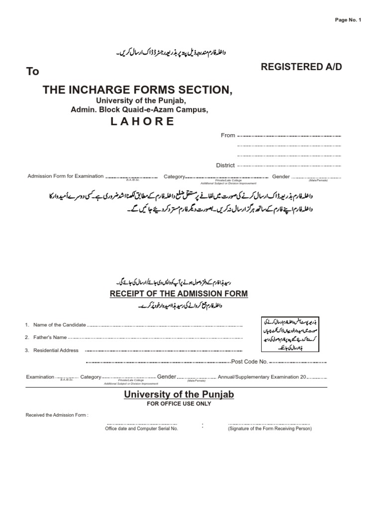 Punjab University BA/BSc Admission Form | PDF | Bachelor Of Science ...