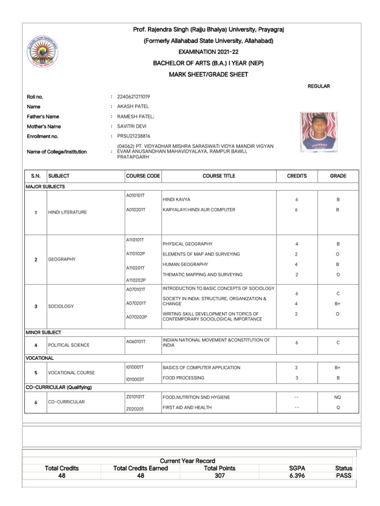 Komal Ba-1 Exam Form | PDF | Academic Degree | Vocational Education