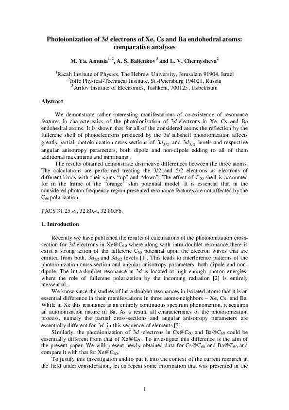 (PDF) Photoionization of 3d electrons of Xe, Cs and Ba endohedral atoms ...