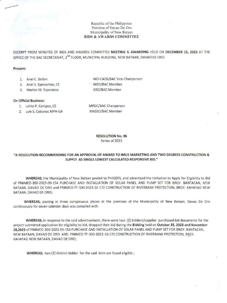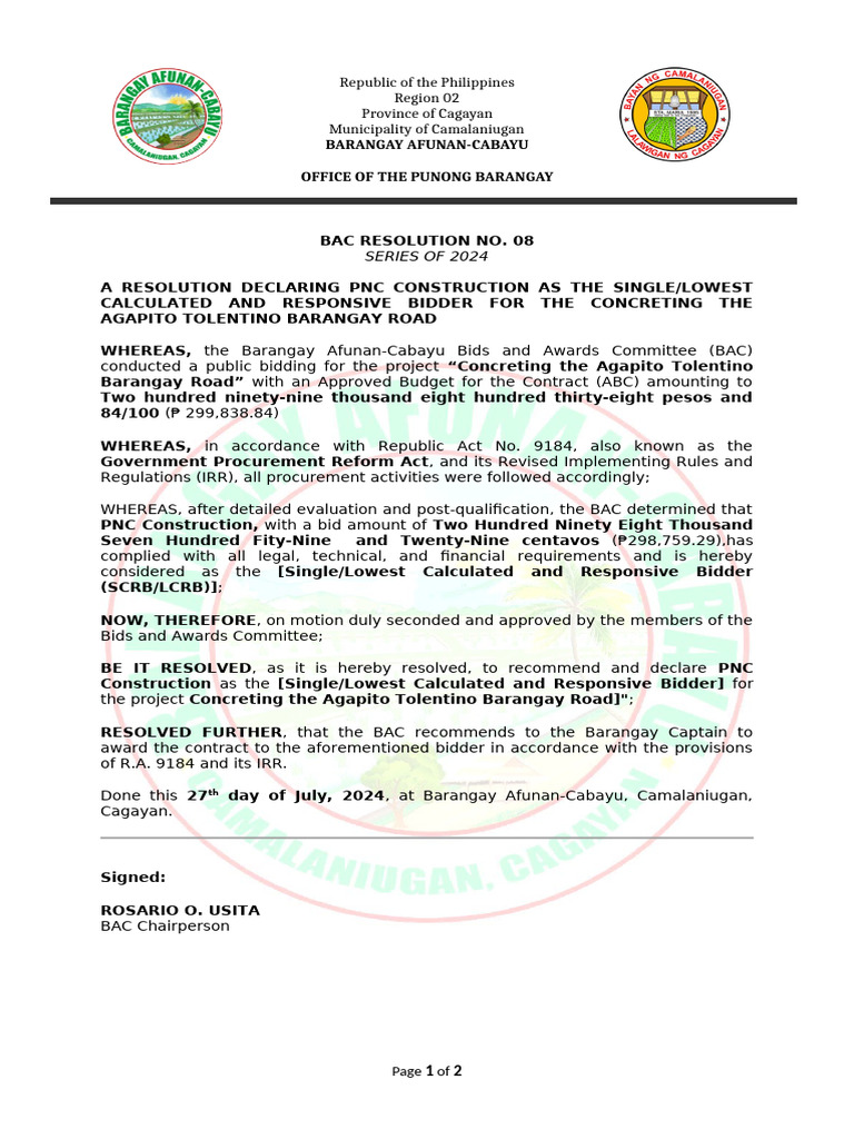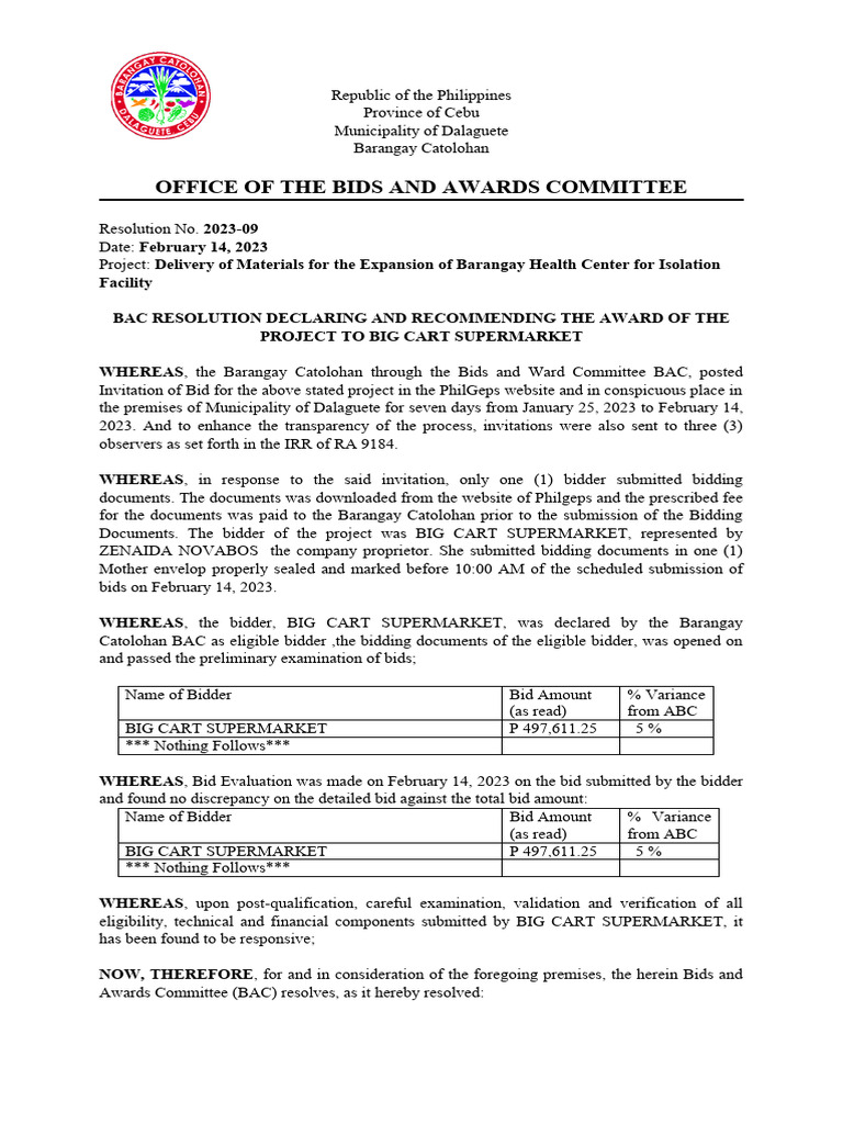 BAC Resolution for PNC Construction Bid | PDF | Government Spending ...