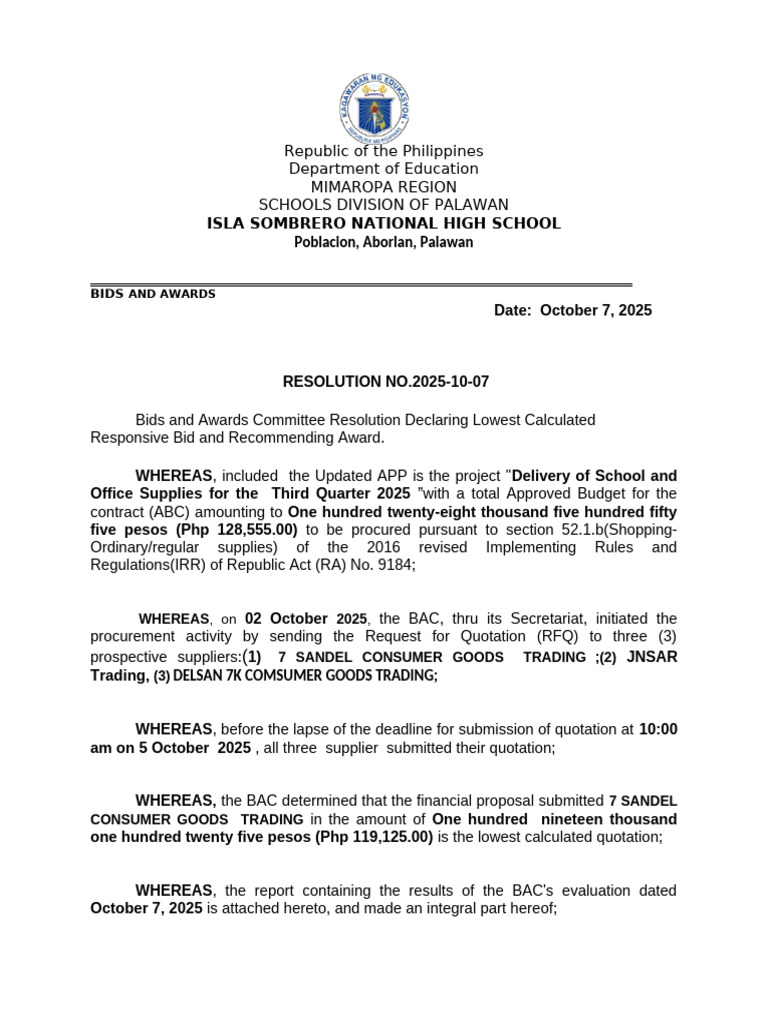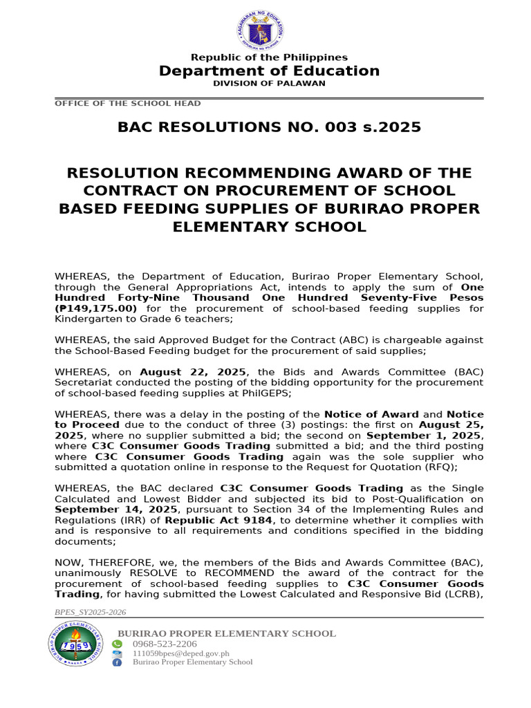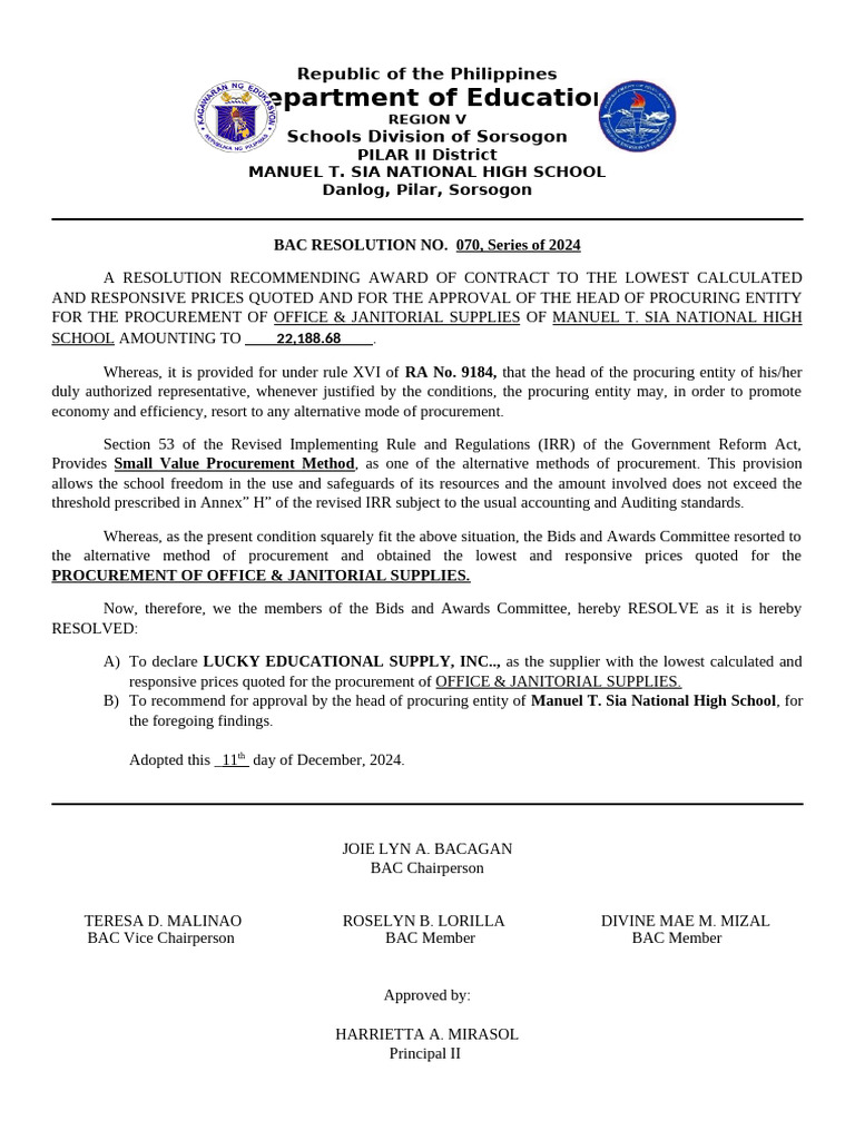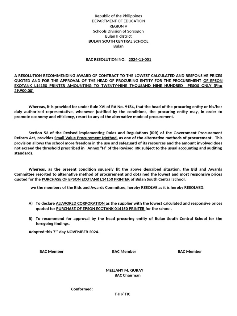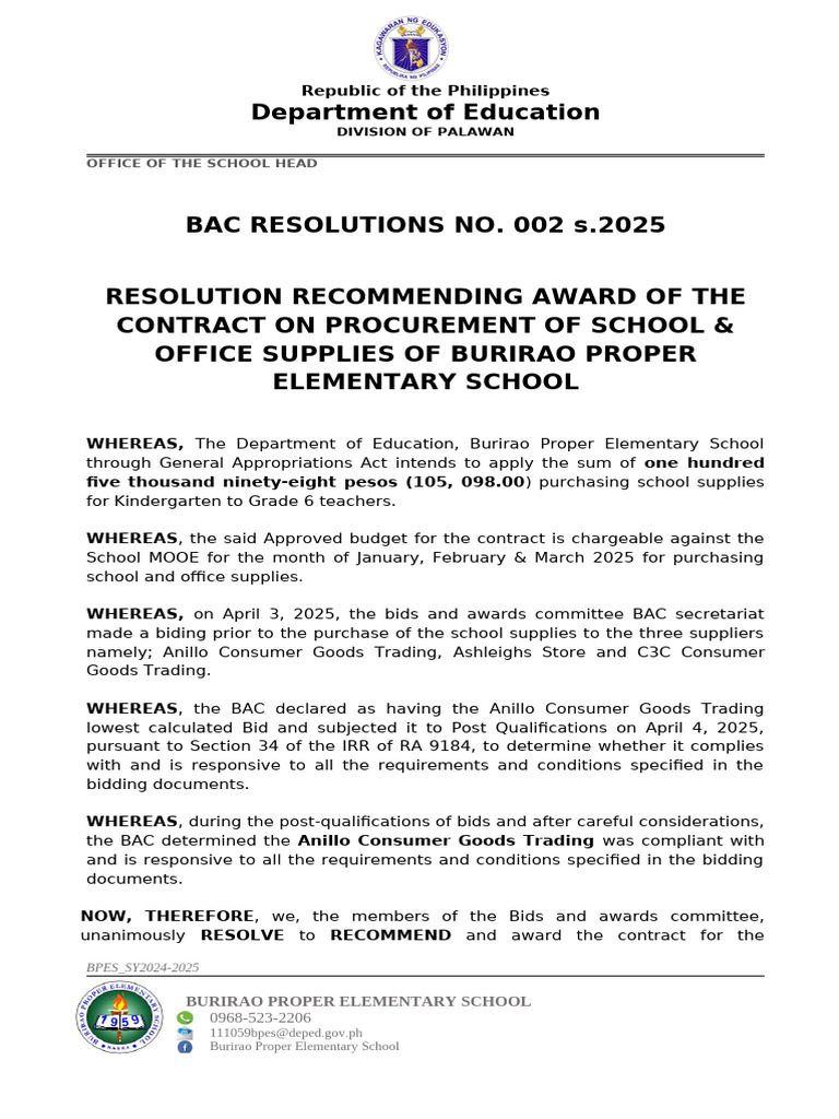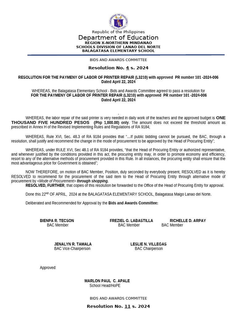 BAC Resolution - DepEd | PDF