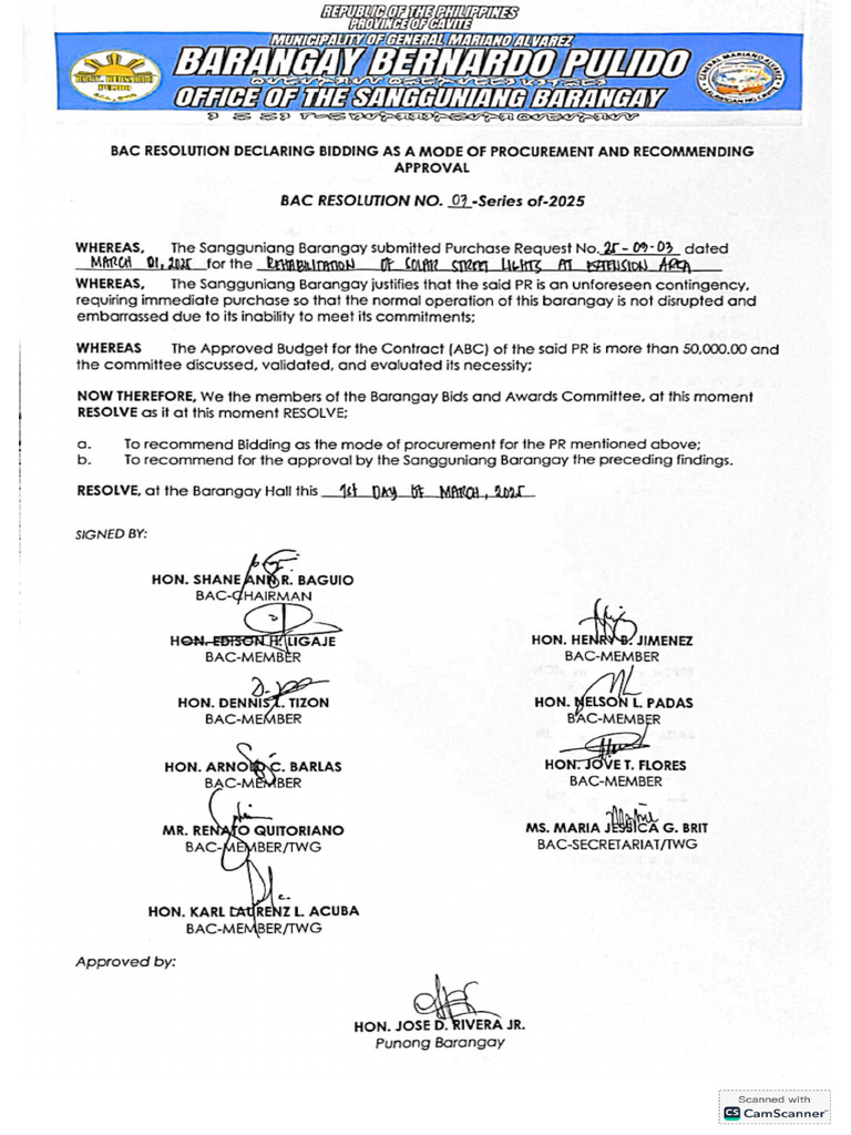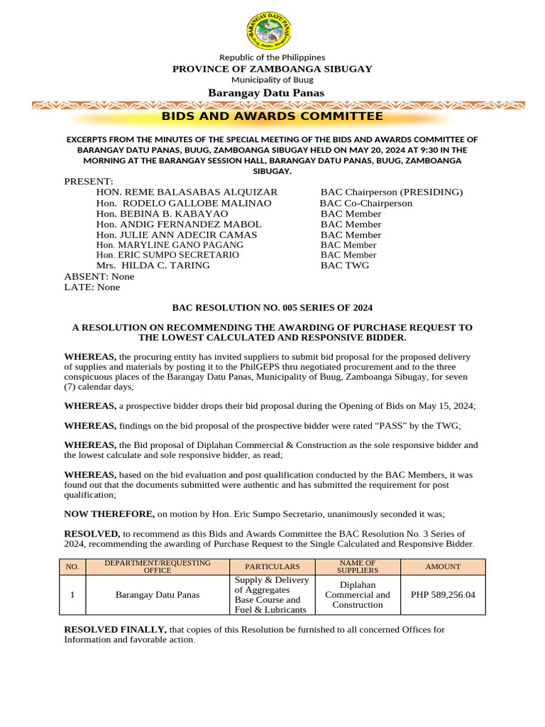 1 BAC Resolution Declaring SCRB and Recommending Approval Brgy 4 | PDF ...