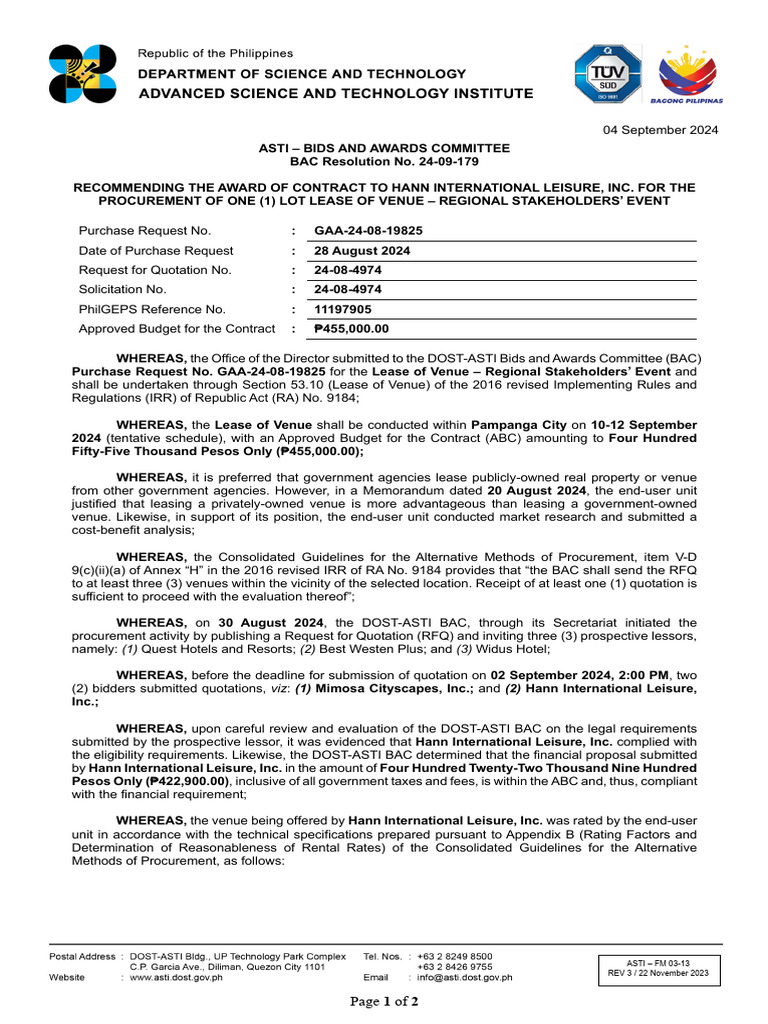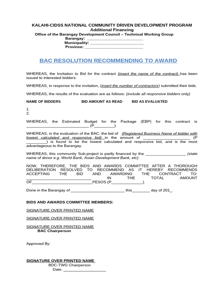 Bac Resolution Recommending The Award | PDF | Business | Finance ...