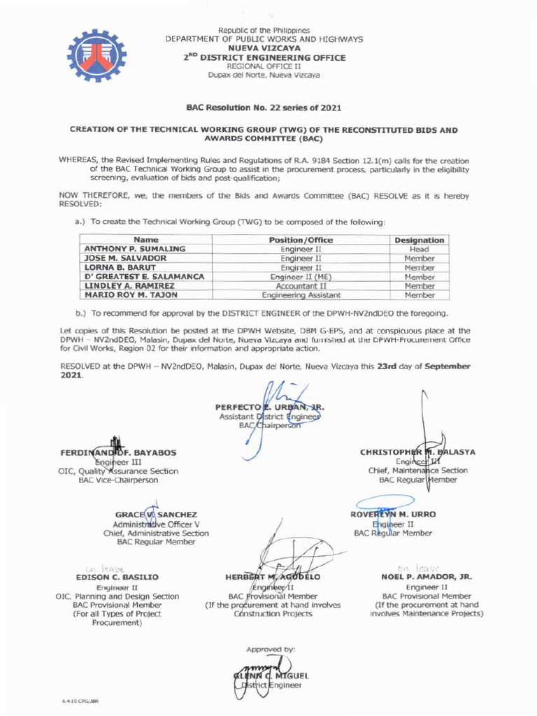 BAC Resolution No 22 Series of 2021-TWG20210929 | PDF