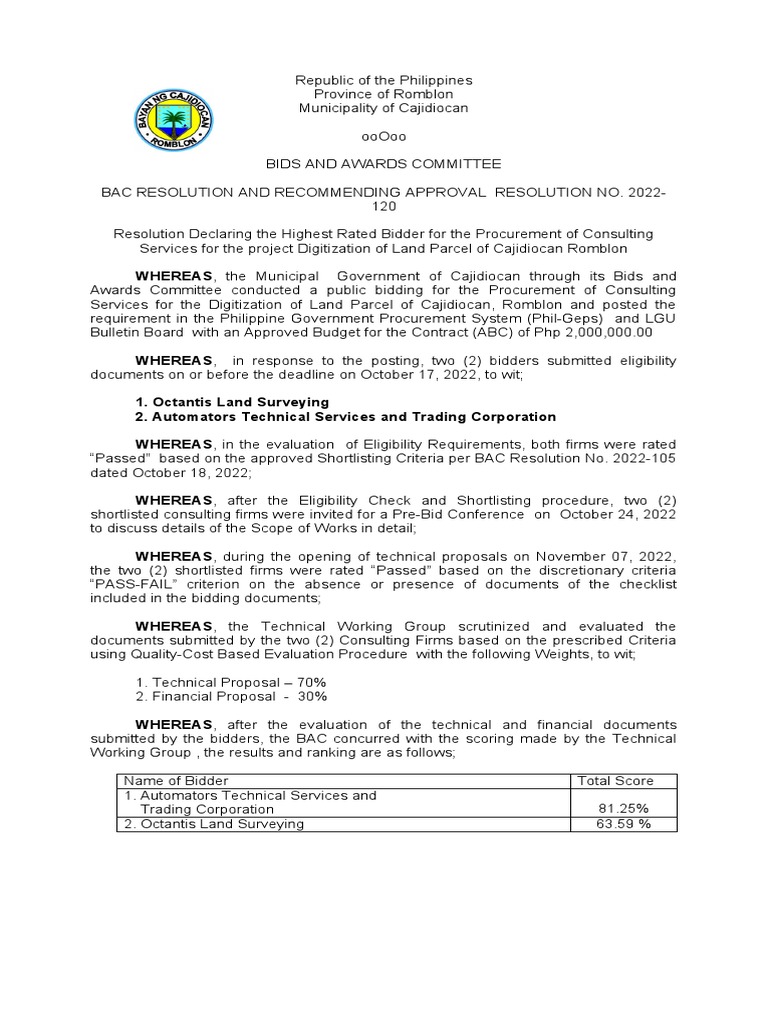BAC RESOLUTION DECLARING LCRB & RECOMMENDING APPROVAL | PROCUREMENT ...