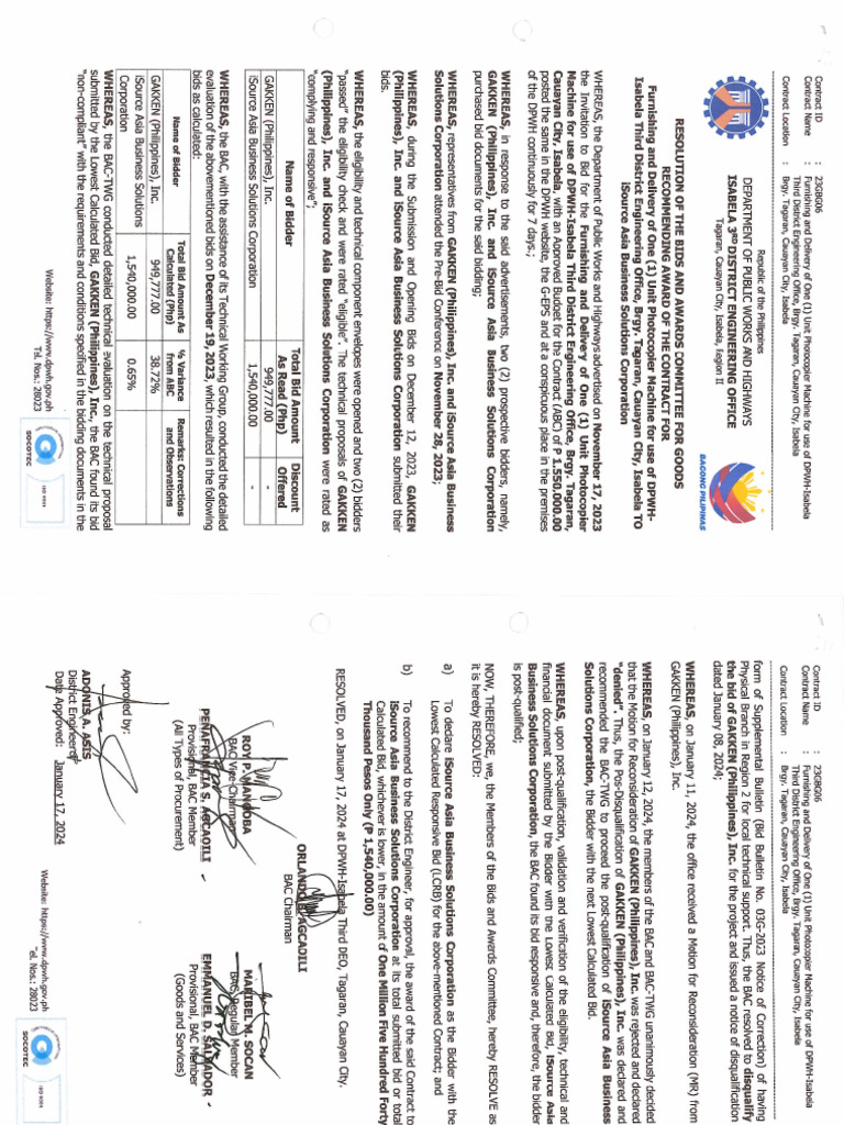 BAC Resolution No. 01-2022 (SK Office Equipment) | PDF | Public Law ...
