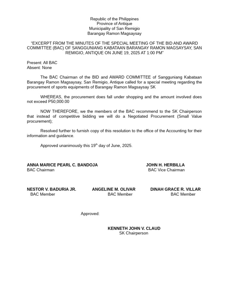 BAC Resoluton-Negotiated Procurement-Small Value Procurement | PDF ...