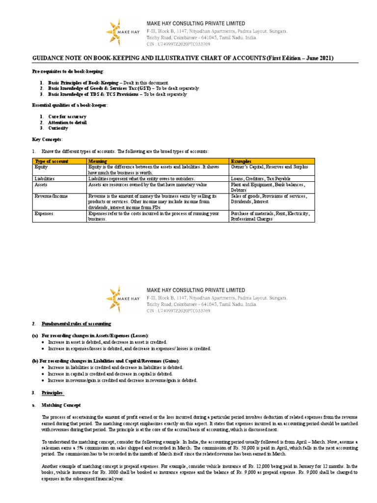 Guidance Note On Book-Keeping | PDF | Debits And Credits | Expense