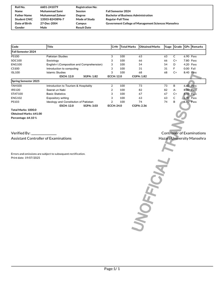 BBA II C Transcripts | PDF | Pakistan
