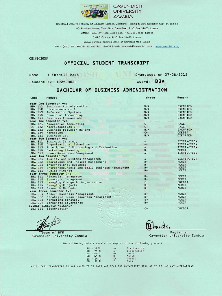 BBA FINAL TRANSCRIPT OFFICIAL | PDF