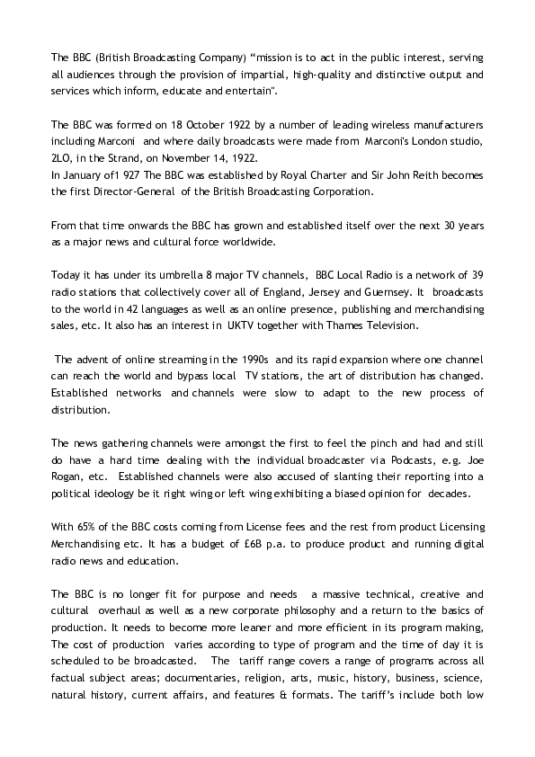 BBC.pdf - BBC The British Broadcasting Corporation BBC is the national ...
