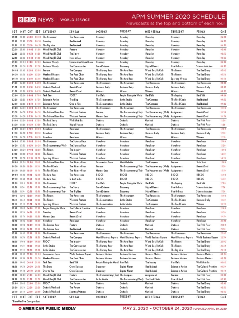 2020 BBC Summer Schedule Updated 20200429 | PDF | Broadcast Journalism ...