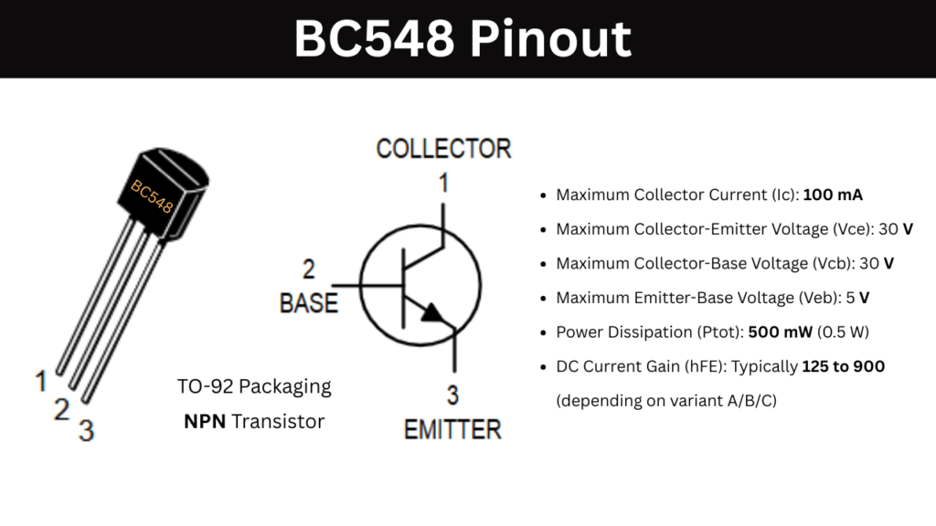 BC548 Transistor: Pinout, Features, Equivalent, and Applications ...