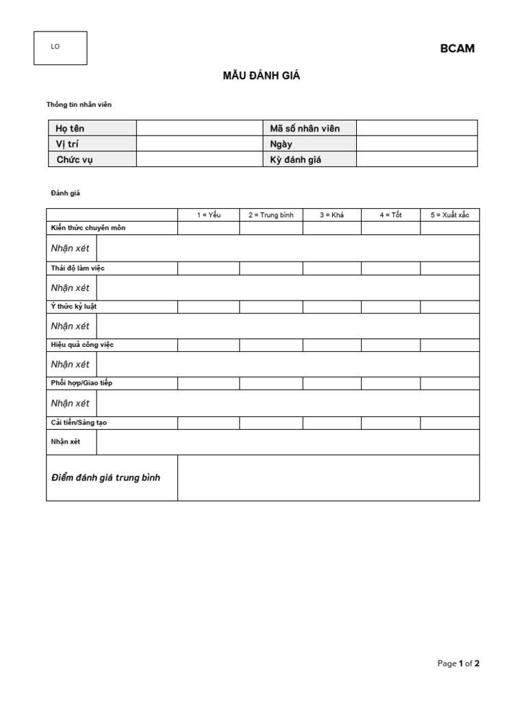 Mẫu đánh giá BCAM globus | PDF