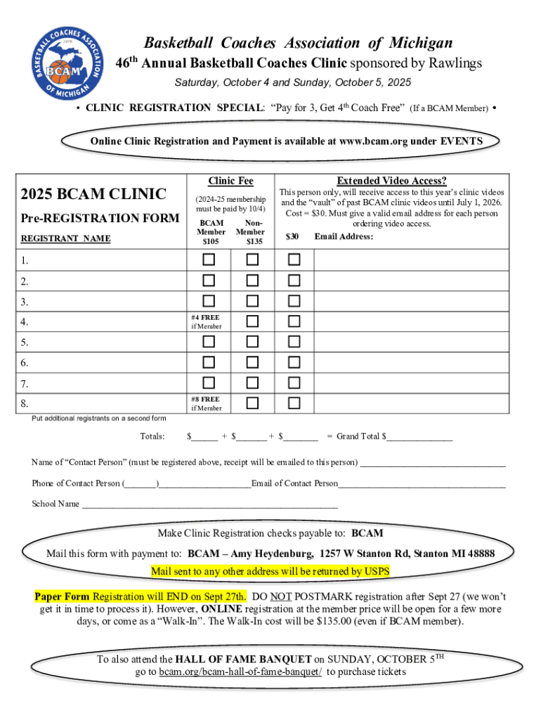 Fillable Online 2025 Bcam Clinic Registration Fax Email Print - pdfFiller