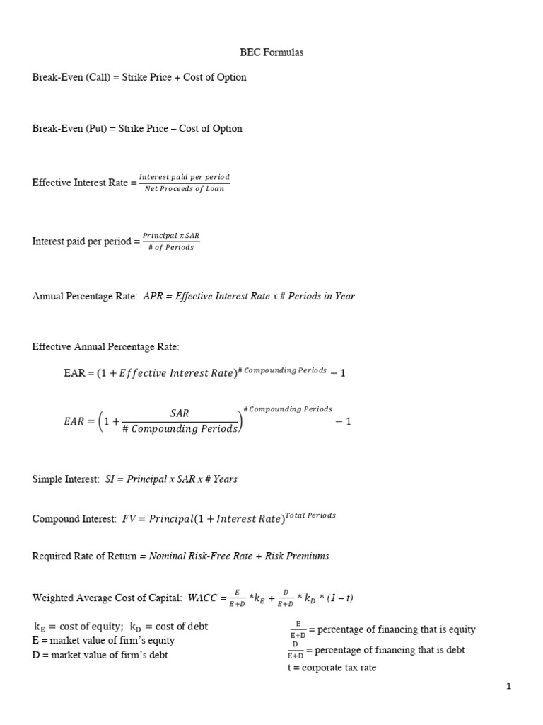 Bec Formulas | PDF | Cost Of Goods Sold | Cost Of Capital