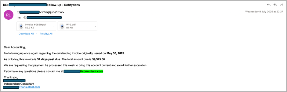 BEC Attack Requests New Payment Methods for Outstanding Invoices in…