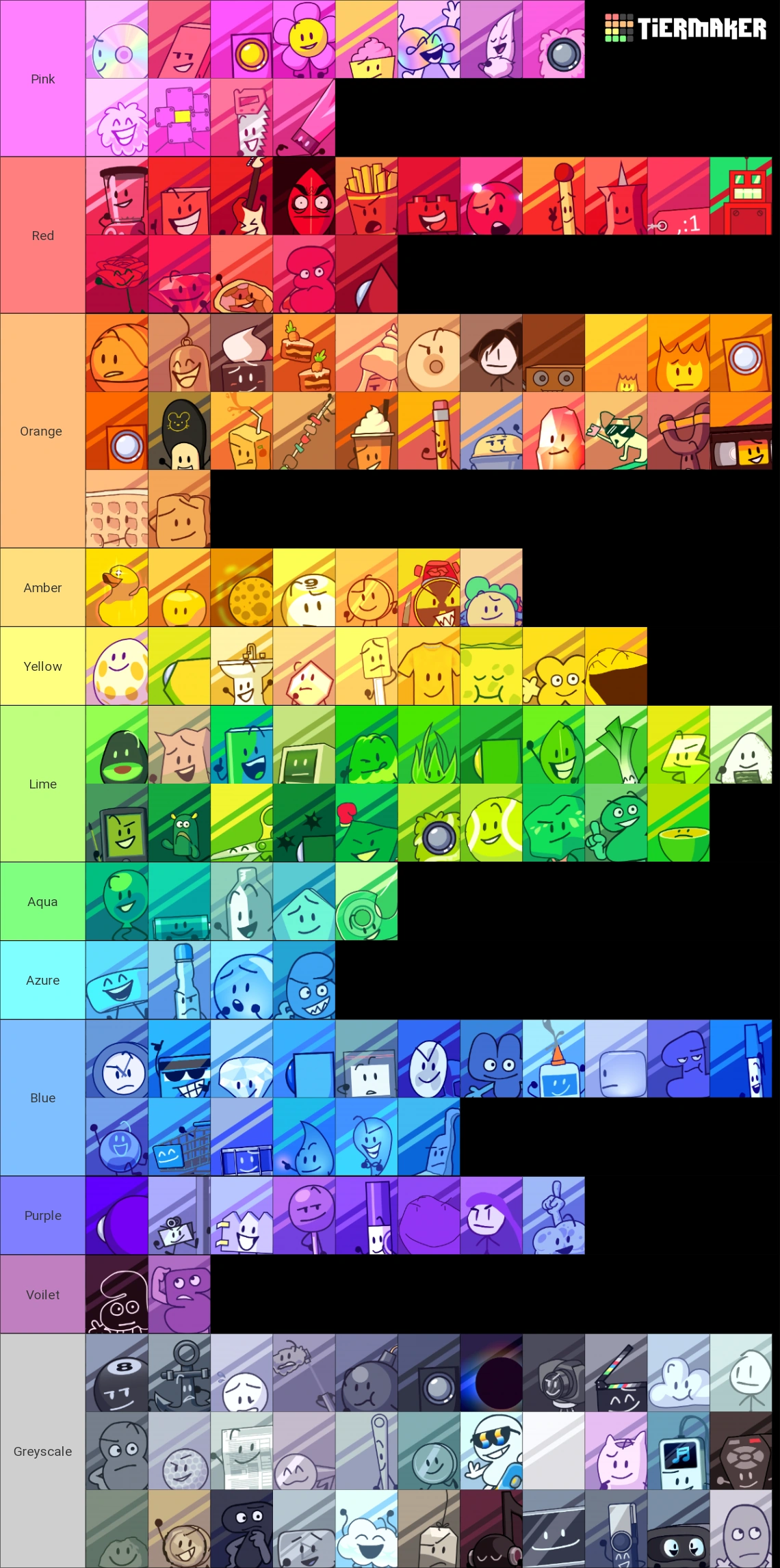 Color Sorted BFDI Characters : r/BattleForDreamIsland