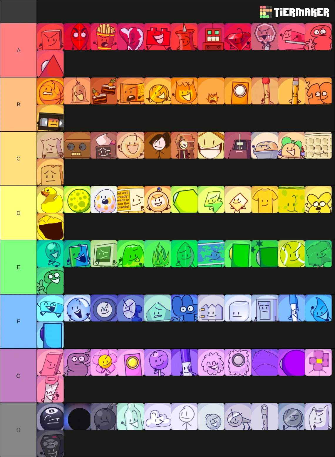 My BFDI Character Tier List (as of TPOT 7) | Fandom