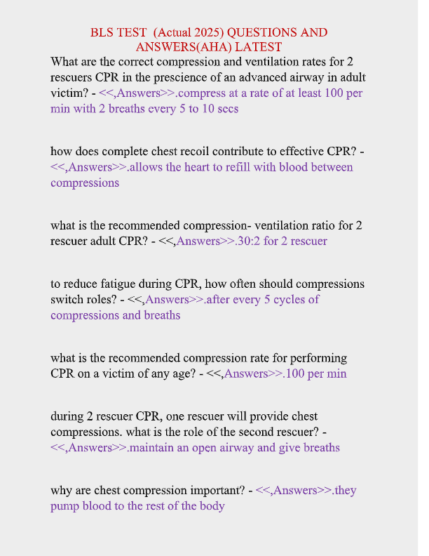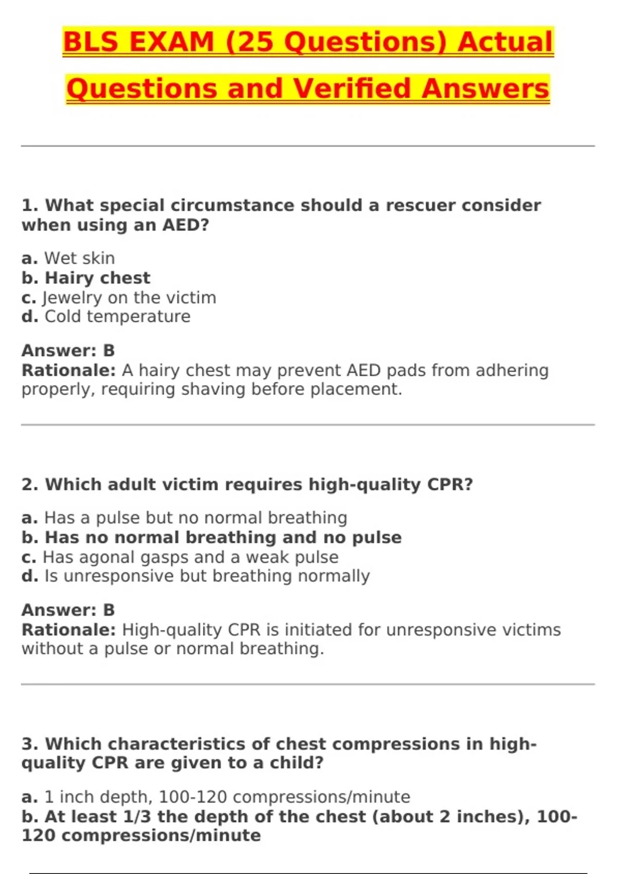 BLS | 25 Questions and Answers with Complete Solutions | Updated 2024 ...