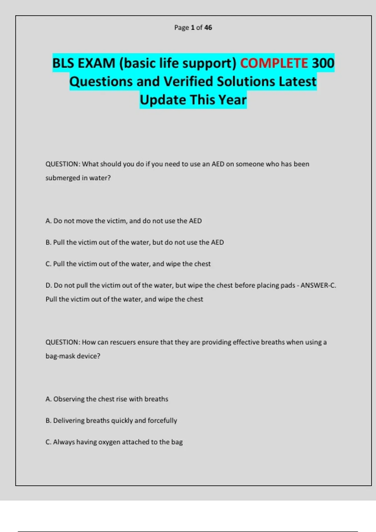 BLS test 2024 Questions and Answers Latest (2024 / 2025) (Verified ...