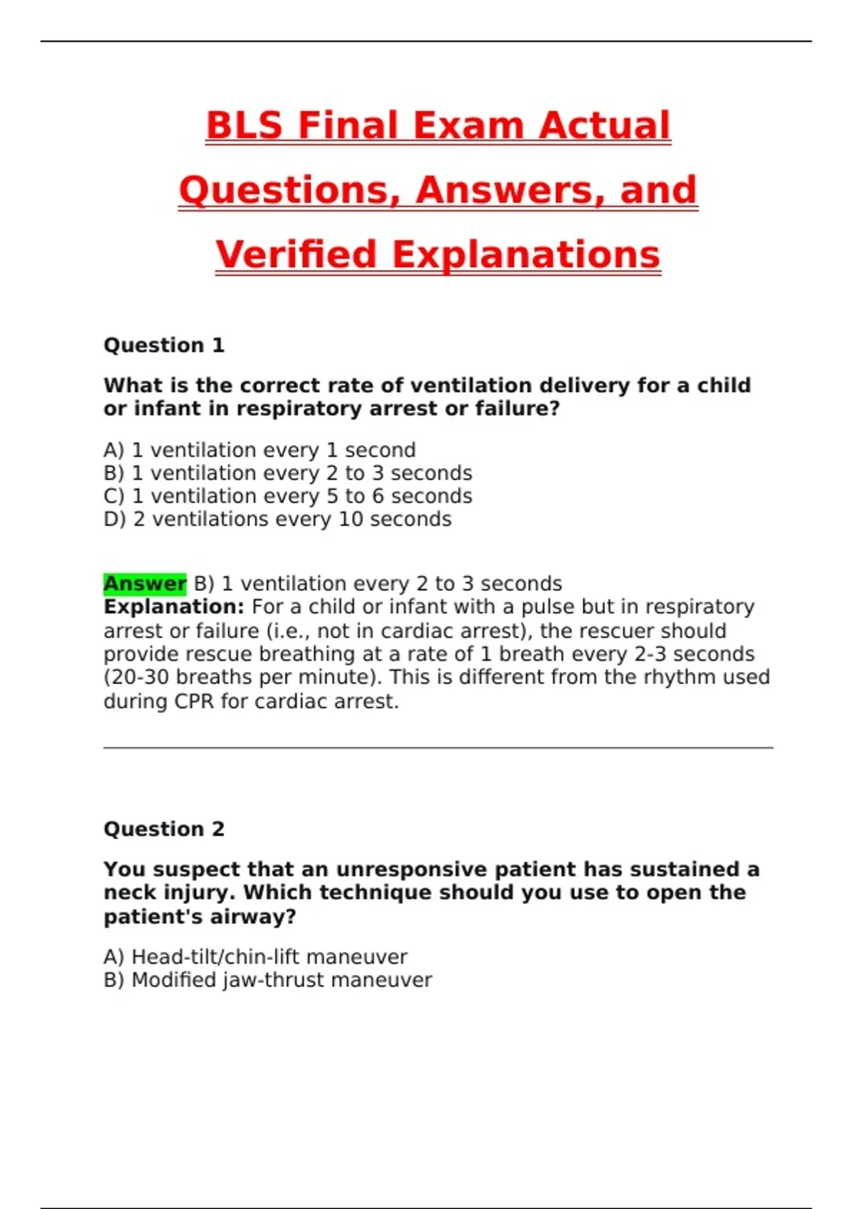 Basic Life Support (BLS) Training Questions and Verified Answers (2024 ...