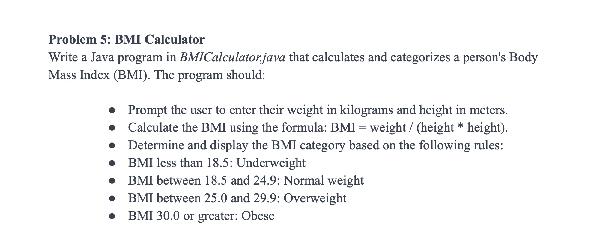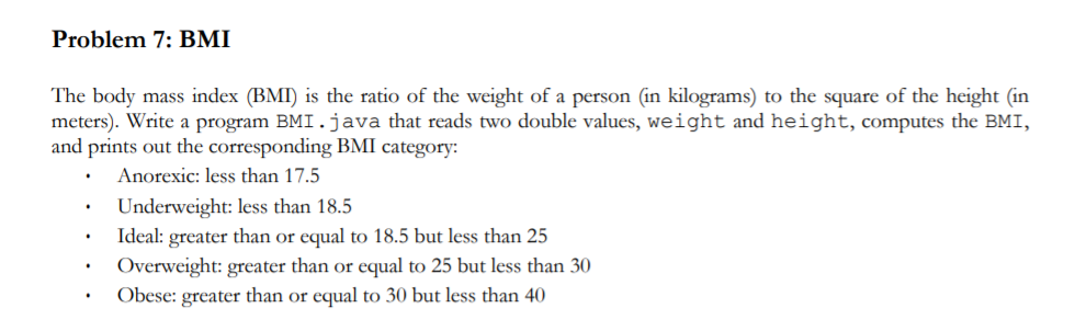 Solved Problem 5: BMI Calculator Write a Java program in | Chegg.com