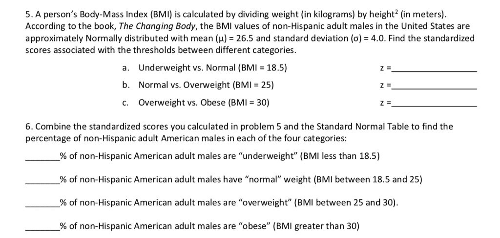 Solved 2) (20 pts) Body mass index (BMI) is a number based | Chegg.com
