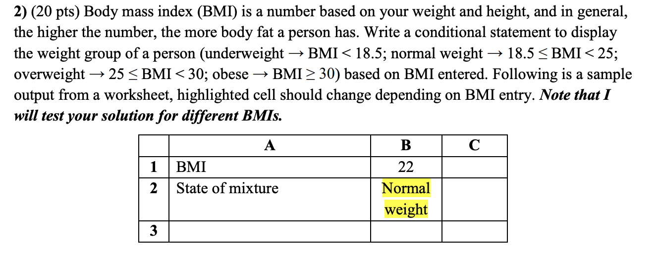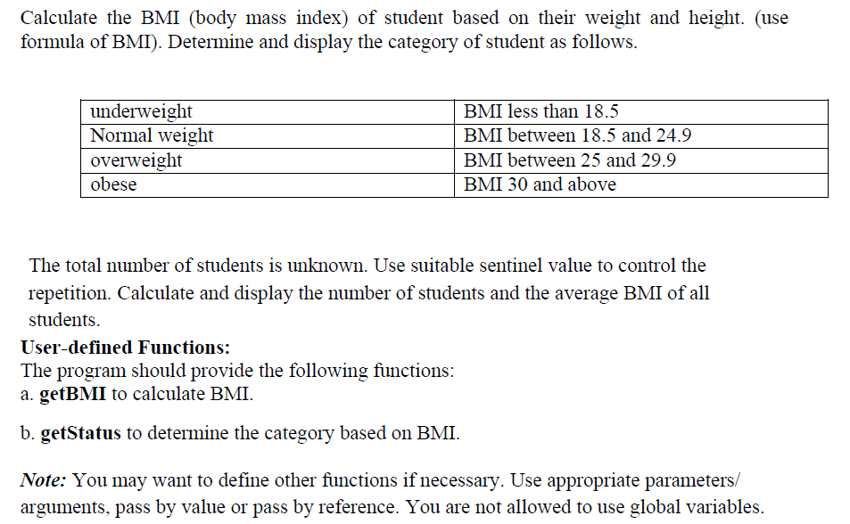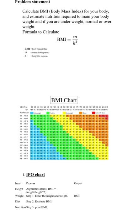 Solved Problem statement Calculate BMI (Body Mass Index) for | Chegg.com