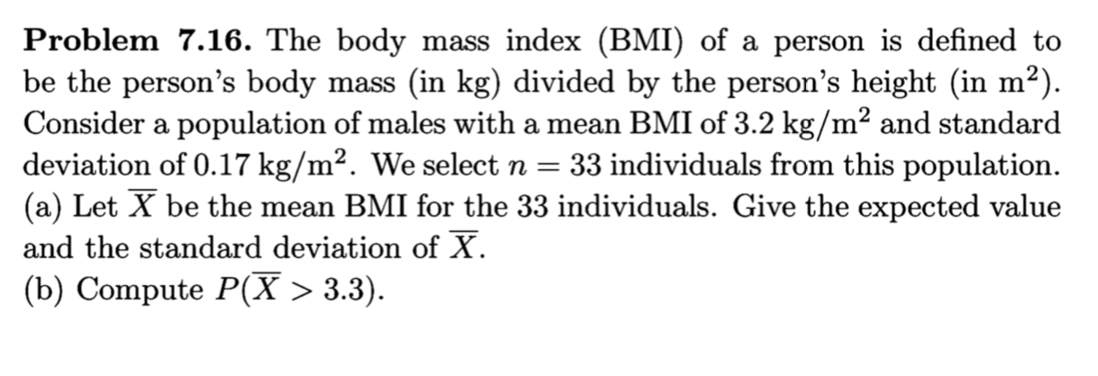 Solved Problem 7.16. The body mass index (BMI) of a person | Chegg.com