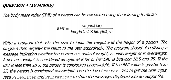 Solved Question 1: A BMI calculator calculates the BMI (body | Chegg.com