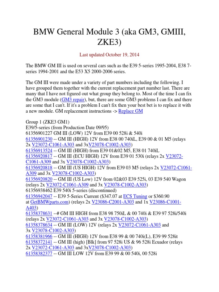 BMW General Module 3 (aka GM3, GM-III, ZKE-III and ZKE3)