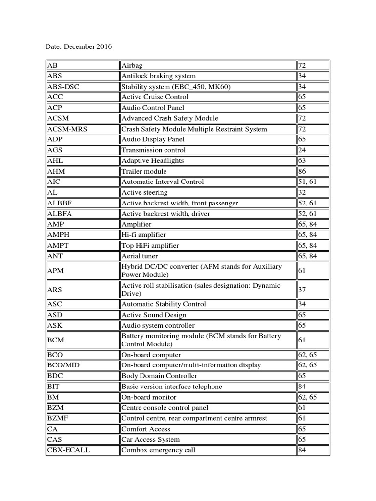 BMW Module Abbreviations List | PDF | Vehicle Parts | Vehicle Industry